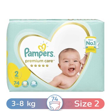 بامبرز بريميوم كير حفاضات أطفال - مقاس 2 - حجم صغير- 3-8 كجم - 74 حفاضة