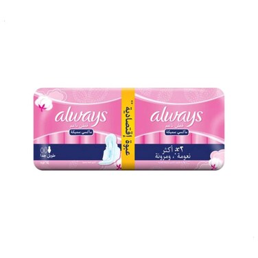 فوط صحية اولويز ماكسي السميكة بملمس قطني، طويلة جدا - 28 فوطة