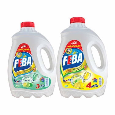 سائل تنظيف الاطباق من فيبا، ليمون - 4 كجم + سائل تنظيف الاطباق، ليمون اخضر - 3 كجم