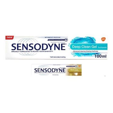 سنسوداين معجون أسنان تنظيف عميق - 100 مل+معجون أسنان متعددة للاسنان الحساسة - 20 مل