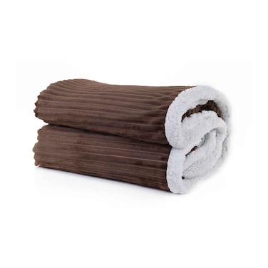 بطانية مينترا صوف فلانيل ناعمة ومقلمة ببطانة - 180×220 سم - بني