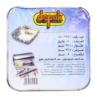 ديباك طقم أطباق فويل مربعة - 5 قطع - متوسطة الحجم