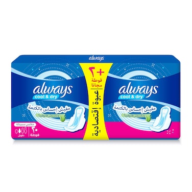 أولويز فوط صحية كول أند دراي - فوطة طويلة - انتعاش الألوفيرا - 20 فوطة