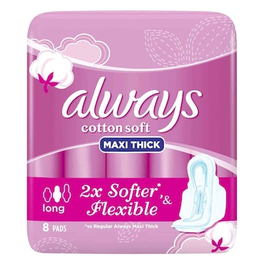 فوط اولويز الصحية بنعومة القطن ماكسي سميكة - 8 فوط