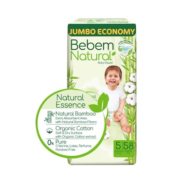 Bebem Natural Baby Diapers - Junior Size 5 - 58 Diaper