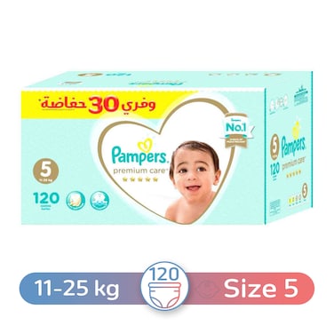 Pampers Premium Care Diapers 5 Junior, 11-25 Kg - 120 Diapers