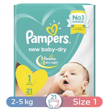 Pampers Baby-Dry Diapers - Size 1 - Newborn - 2-5 Kg - 21 Diapers