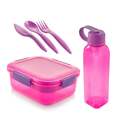 M-Design Lunch Set - 2.1L Lunch Box with 800ml Water Bottle and 3-Piece Cutlery Set - Pink/Purple