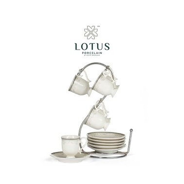 Lotus Porcelain Coffee Cup Set - 13 Pieces