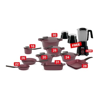 Pyrex Granite Cookware Set - 23 Pieces + Blender - 400 Watt