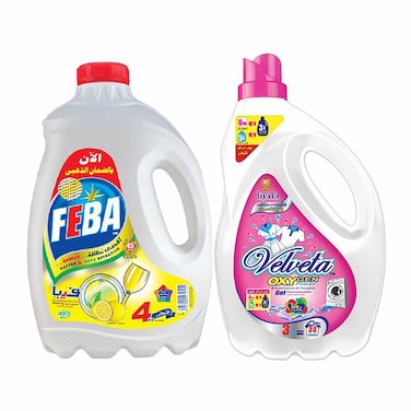 Velveta Oxygen Gel Detergent - 3 Liter + Feba Lemon Dishwashing Liquid - 4 Liter