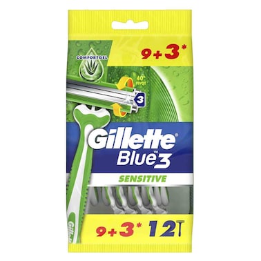Gillette Blue3 Sensitive Disposable Razors With Comfort Gel - 9+3 Pieces