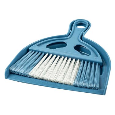 Titiz Small Broom Brush for Cleaning with Plastic Handle and Dustpan - Blue and White