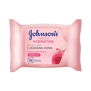 Johnson's Fresh Hydration Micellar Cleansing Wipes, Rose Water - 25 Wipes