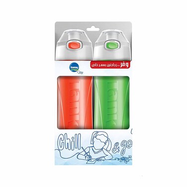 Tank Me Bottles Set, 0.65 Liters, Green + Orange - Pack of 2