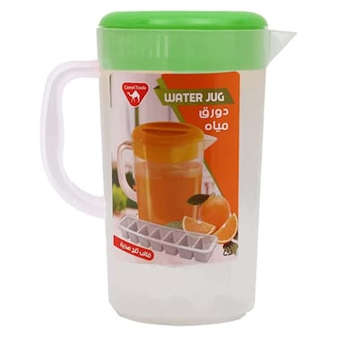 Made of plastic, used for storing and pouring liquids. It is known for its lightweight and durable design, available in various sizes to meet different storage needs.