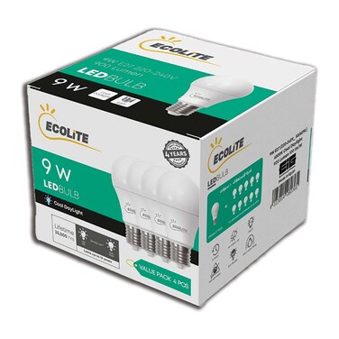 Ecolite E27 LED Bulb - 9 Watt - 4 Pieces