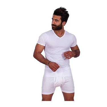 Jill Half-Sleeve Undershirt V-Neck - White - M1809-SZ3