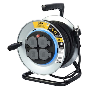 I Lock Metal Cable Reel - 25 Meters - 4 Outlets Sockets