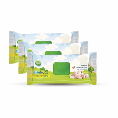 Easy Care Baby Wipes With Plastic Cap, 80 Wipes - Pack Of 2+1