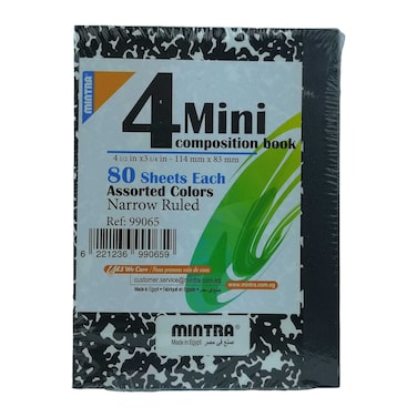 Mintra Mini Composition Notebook, 80 Sheets - 4 Pieces