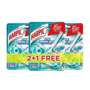 Harpic Active Fresh Tropical Lagoon Toilet Cleaner Rim Block - 35 gram - 3 Pieces