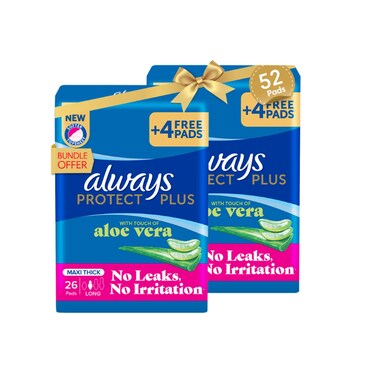 Always Protect Plus Pads with Touch of Aloe Vera - Long - Maxi Thick - 52 Pads